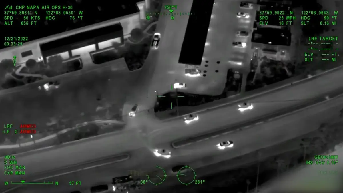 رکنا : کمی قبل از نیمه شب، افسران پلیس هوایی برای کمک به افسران پلیس نیروی زمینی منطقه اوکلند در تعقیب یک مضنون پاسخ مثبت دادند.