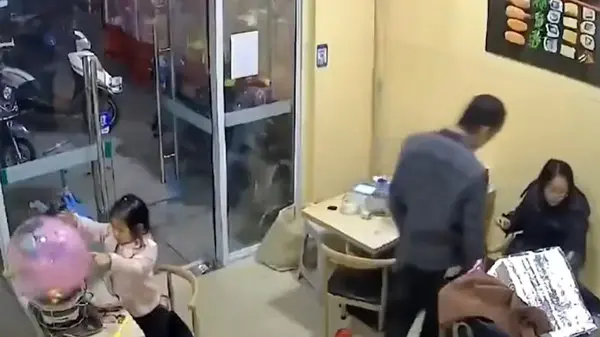 ببینید / لحظه انفجار بادکنک در دست دختربچه بازیگوش / بادکنک هلیومی را روی گاز گرفت + فیلم شوک آور