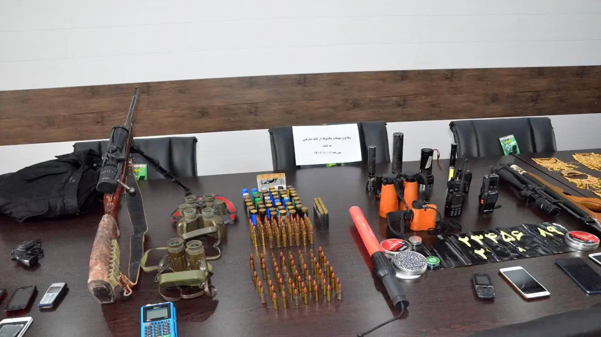 فرمانده انتظامی هرمزگان گفت: در بازرسی از مخفیگاه متهمان ۶ کیلو و ۵۰۰ گرم طلاجات مسروقه متعلق به مال باخته، یک قبضه سلاح برنو غیرمجاز، یک قبصه اسلحه ساچمه زنی غیرمجاز، ۴ دستگاه بی سیم دستی آماده به کار، البسه نظامی، یک دستگاه تلفن ماهواره ای، ۶۰ عدد فشنگ جنگی کلاش، ۶۲ عدد فشنگ برنو، ۵۵ فشنگ ساچمه زنی و ۴ دستگاه دوربین دید در شب کشف و ضبط شد.