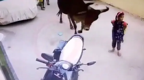 فیلم ترسناکرحمله گاو وحشی به دختر بچه !