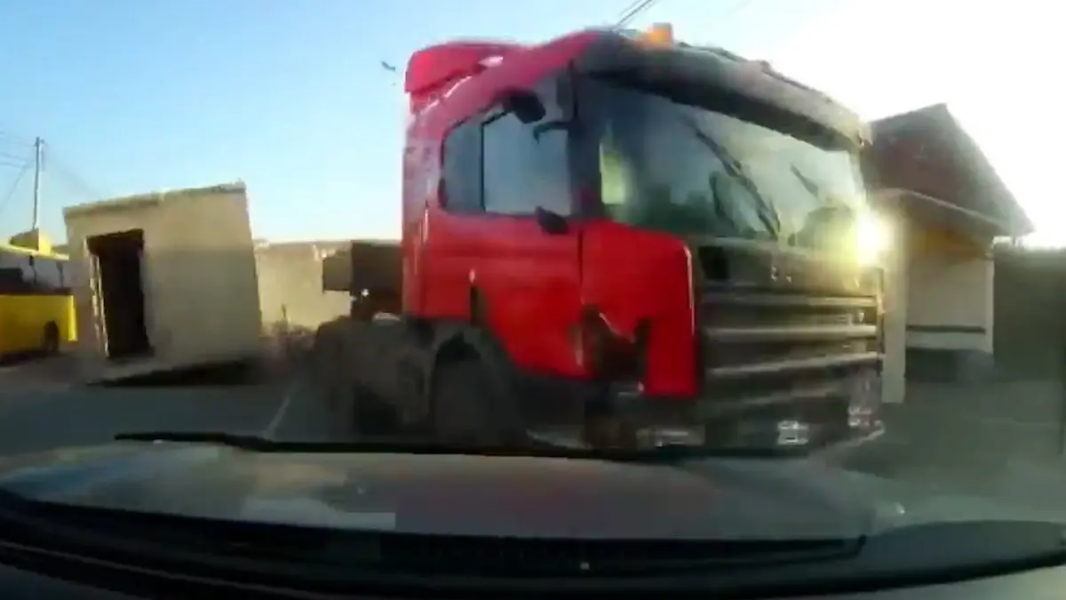 فیلم لحظه تصادف شاخ به شاخ تریلی با یک خودرو / تریلی ترمز بریده بود