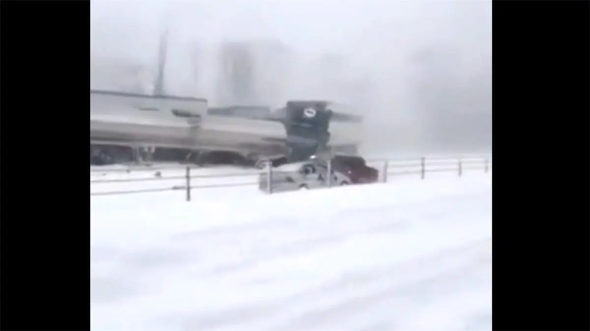 ببینید / برخورد وحشتناک ماشین ها به هم در کولاک آمریکا + فیلم