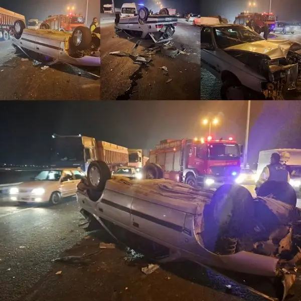 واژگونی هولناک پژو ۴۰۵ در اتوبان قزوین _ زنجان + عکس