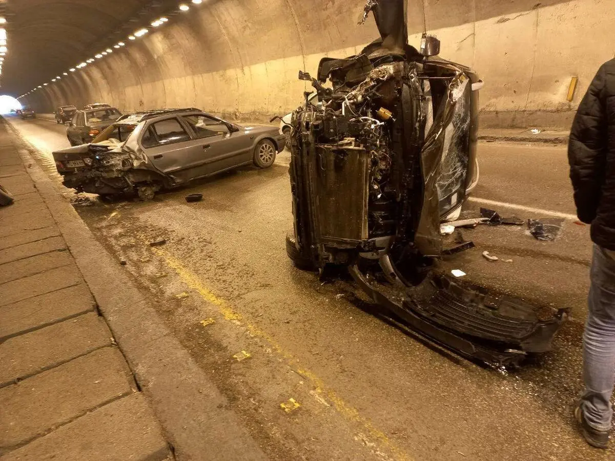 تصادف زنجیره‌ای ۳ دستگاه سواری در آزادراه پردیس + عکس