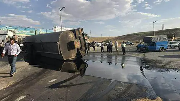 واژگونی هولناک تانکر حامل گازوئیل در جاده نائین