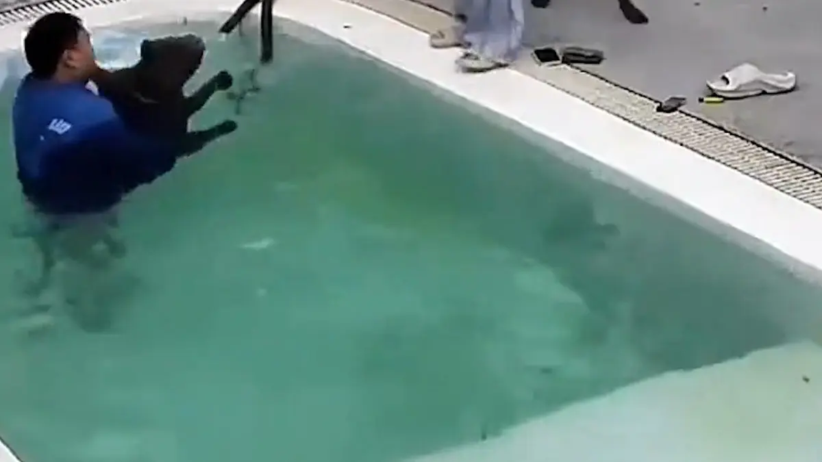 رکنا : مرد جوان برای نجات جان سگ خود به داخل استخر پرید و وقتی سگ را از استخر بیرون آورد سگ دیگری به داخل استخر پرید.