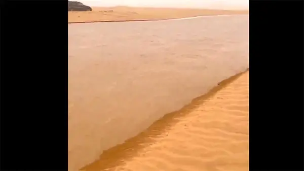 ببینید / پدیدهای نادر در طبیعت / سیل وسط کویر عربستان + فیلم