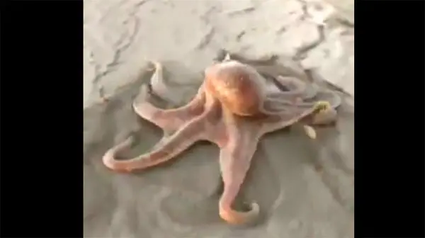 ببینید /تصویر منحصربفرد و تماشایی از قدم زدن اختاپوس در ساحل جزیره کیش + فیلم