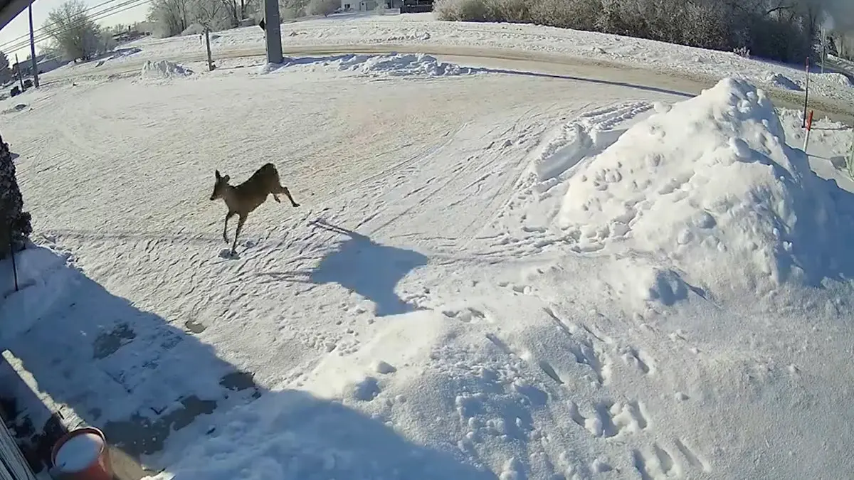 رکنا: آهویی که به سمت یک فروشگاه می دود و با برخورد شدید به در فروشکاه وارد آن می شود.