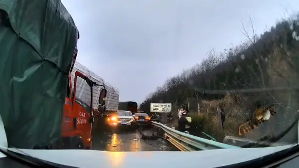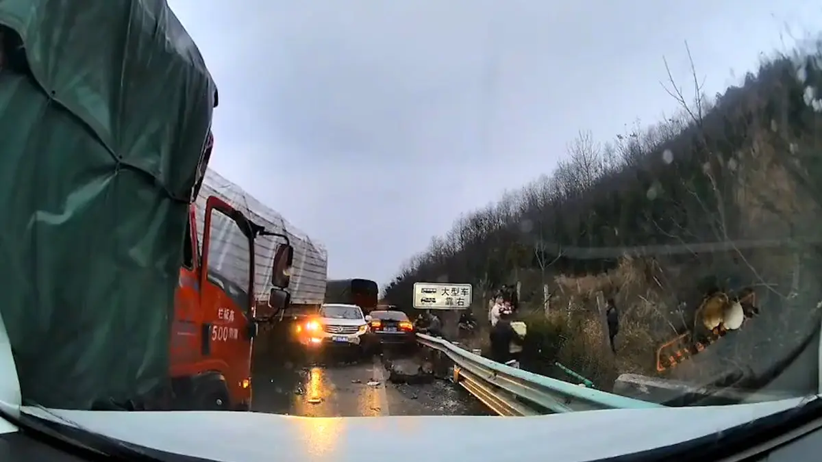 فیلم وحشتناک از تصادف زنجیره ای در اتوبان / کامیون هم پرس شد