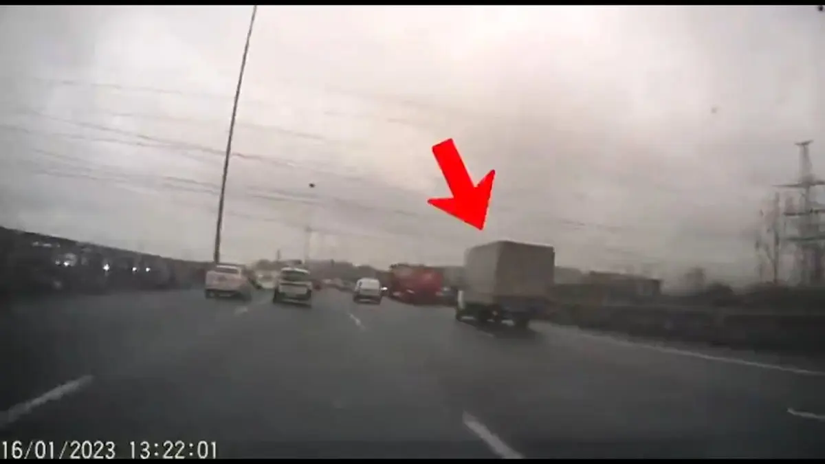 لحظه تصادف هولناک کامیون در اتوبان شلوغ / راننده از ترس پیاده فرار کرد + فیلم