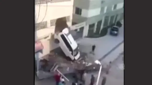 فیلم سقوط هولناک ماشین روی زن جوان و فرزندش