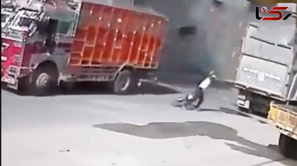 ببینید / فیلم وحشتناک از سقوط تریلی از بالای پل روی یک خودرو / همه زیر تریلی له شدند + فیلم
