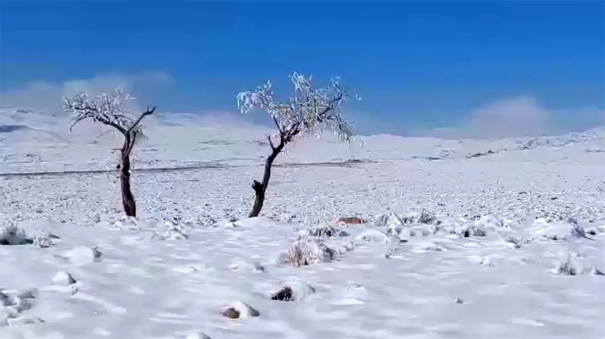 ببینید / طبیعت زیبای برفی دشتخاک زرند در استان کرمان