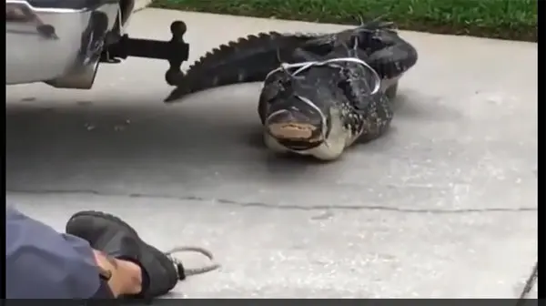 اما در ویدئوی منتشر شده صید این تمساح چالش برانگیز است. علیرغم اینکه تمساح با تسمه و نوار بسته شده است، موفق میشود با سر ضربه محکمی به صیاد خود بزند و او را نقش بر زمین کند. تمساح همچنین میتواند خود را از پشت وانت به پایین برساند.