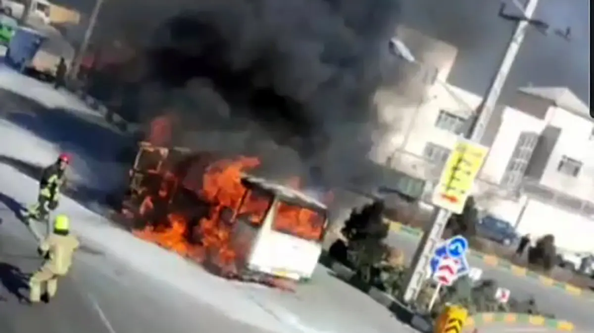 آتش سوزی 2 مینی بوس در مشهد +عکس های حریق برزگ