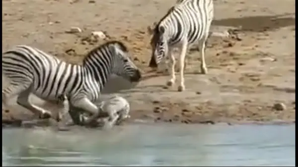 ببینید / تلاش عجیب یک گورخر برای غرق کردن یک کره گورخر در دریاچه