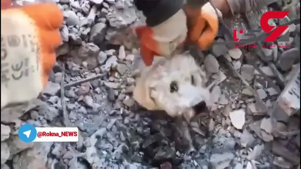 فیلم دیدنی از نجات یک سگ توسط امدادگران از زیر آوار