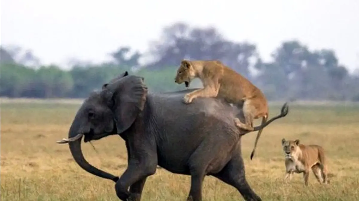 در این ویدئو شیری را خواهید دید که قصد دارد فیلی عظیم الجثه را شکار کند اما در نهایت مجبور به فرار می شود.
