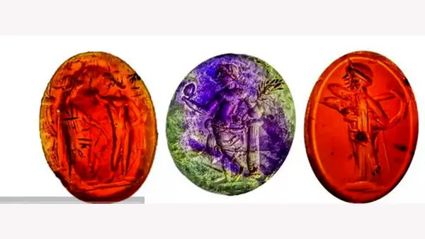 این سنگها حکاکی شده هستند و اندازه کوچکترین آنها حدود ۰.۲ اینچ (۵ میلیمتر) و بزرگترین آنها حدود ۰.۶ اینچ (۱۶ میلیمتر) است. حکاکی بر روی سنگهایی در این ابعاد کوچک نشان از مهارت حکاکی استادان و هنرمندان در آن دوره دارد.