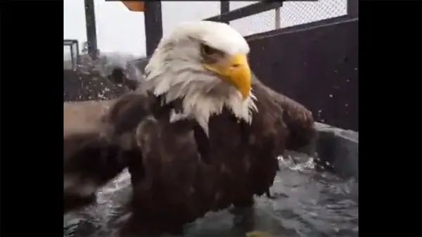 حوادث رکنا: تصویری حیرتانگیز از لحظه حمام کردن یک عقاب در استخر یک آسمانخراش را تماشا کنید.