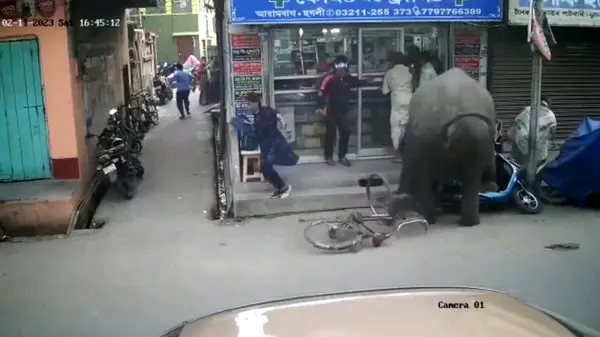 فیلم حمله فیل عصبانی به مردم در خیابان / همه وحشت کردند