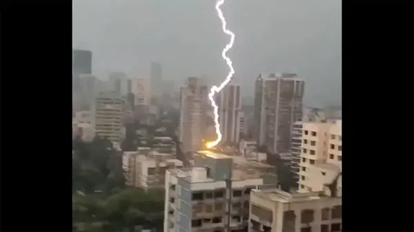 حوادث رکنا: لحظه تکاندهنده از اصابت صاعقه به یک ساختمان چند طبقه را ببینید.