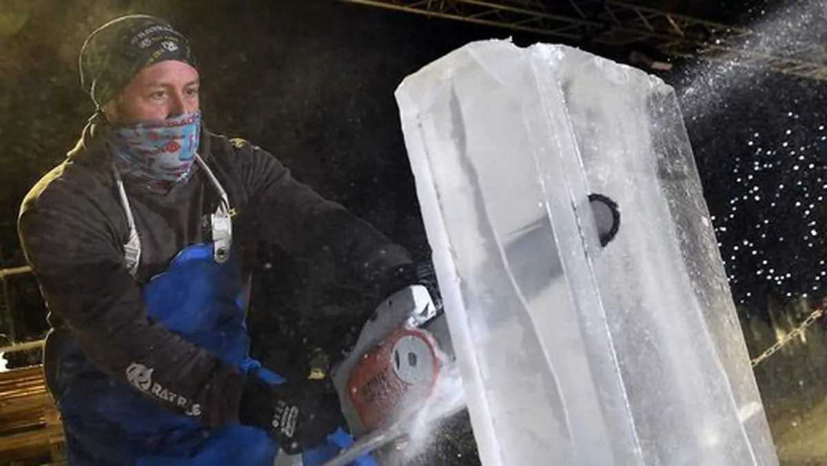 فیلم حیرت انگیز ساخت مجسمه خودرو با یخ