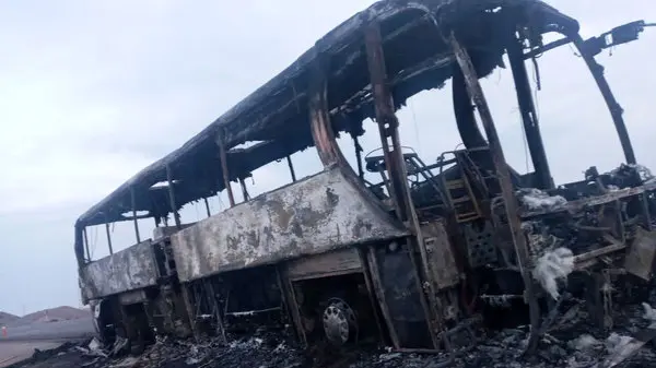 3 عکس از توبوس آتش گرفته در یزد / اتوبوس مسافربری جزغاله شد + علت