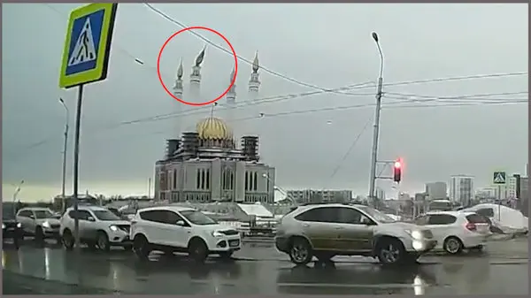 رکنا : وزش باد شدید باعث افتادن مناره مسجد در روسیه شد .