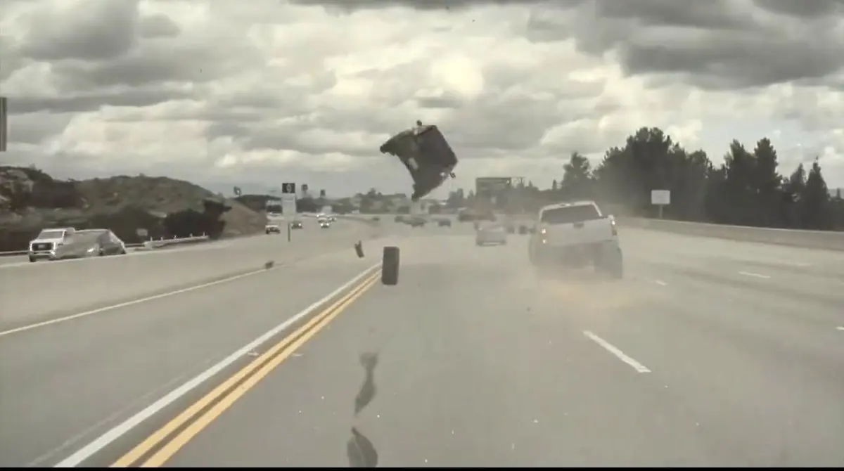 حوادث رکنا؛ در رفتن یک لاستیک خودرو در اتوباره باعث شد تا ماشین دیگر روی لاستیک رفته و پرواز کنان، واژگون شود.