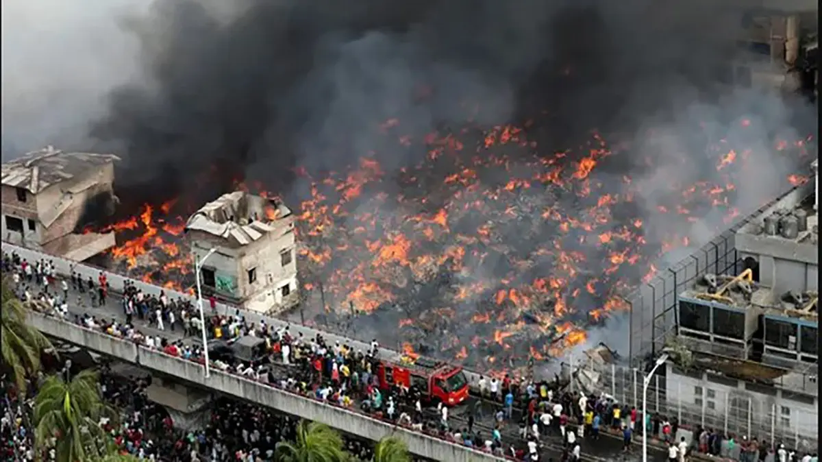 حوادث رکنا؛ صدها آتش نشان در حال مهار آتش در بازار بزرگ پوشاک در بنگلادش هستند.