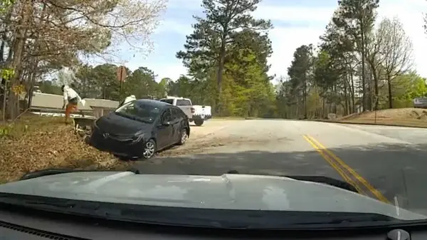 رکنا : یک افسر از مانور PIT برای متوقف کردن ماشین استفاده کرد. سپس دو متهم که داخل وسیله نقلیه بودند از خودرو پیاده شده و پا به فرار گذاشتند