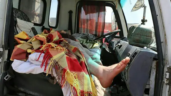 ببینید / سقوط راننده کامیون از ارتفاع هنگام استراحت + فیلم