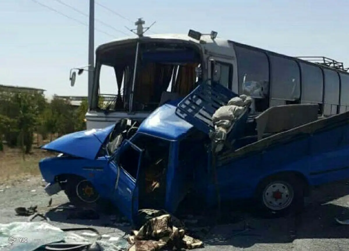 عکس وحشتناک از تصادف مرگبار نیسان آبی با اتوبوس در جاده خاش به زاهدان + جزییات