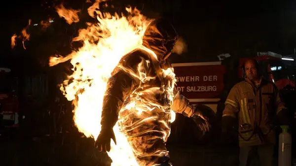 ببینید / لحظه وحشتناک آتش گرفتن یک مرد روی صحنه مسابقه + فیلم