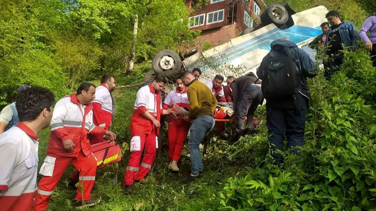 مصدومیت 17 نفر در واژگونی مینیبوس در گیلان