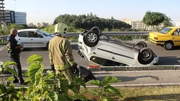 واژگونی مرگبار پژو 206 در جاده کرج به قزوین