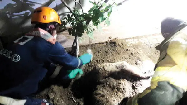 از سوی دیگر نیز امدادگران آتش نشانی که با هدایت و نظارت آتشپاد دوم مهدی رضایی عازم محل وقوع جنایت شده بودند، با استفاده از تجهیزات امدادی، جسد مذکور را درحالی از زیر خاک های باغچه بیرون آوردند که دچار فساد نعشی شده بود.