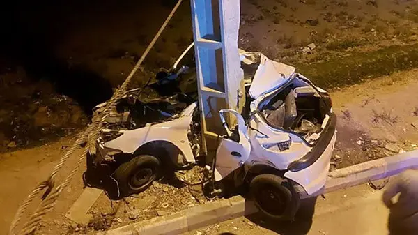 عکس وحشتناک از تصادف مرگبار پژو 206 با تیربرق / پژو مچاله شد