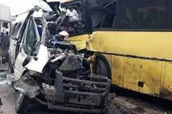 ببینید / لحظه وحشتناک پرت شدن راننده اتوبوس از پنجره پس از تصادف شدید! +فیلم