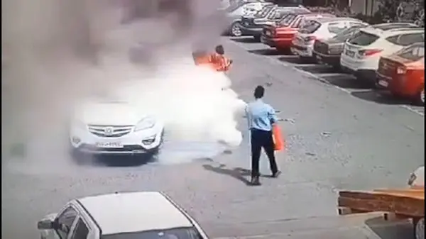 همسایه ها زمانی به خودشان آمدند که نگهبان این شهرک در کسری از ثانیه با کپسول آتش نشانی، آتش را از ماشین و سر و بدن الهام اطفا کرده بود.