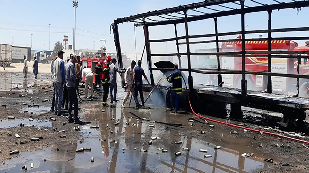 ۲ کامیون ترانزیتی در مرز دوغارون تایباد در آتش سوخت + فیلم