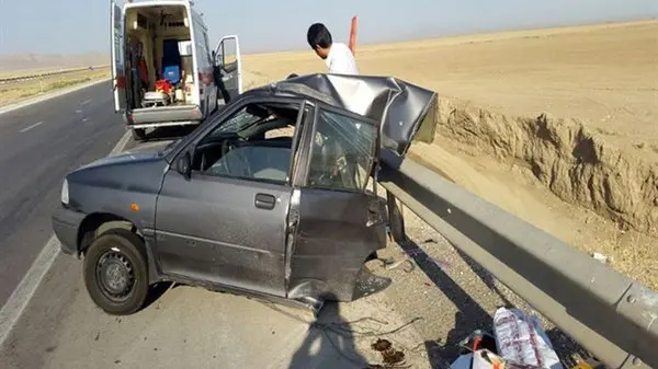 فیلم وحشتناک از نصف شدن مرگبار پراید تازه داماد در جاده ابرکوه / ببینید