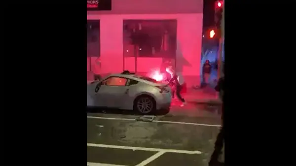 ببینید / اقدام وحشیانه جوانان اوکلندی / کتککاری و به آتش کشیدن خودروها وسط خیابان! + فیلم