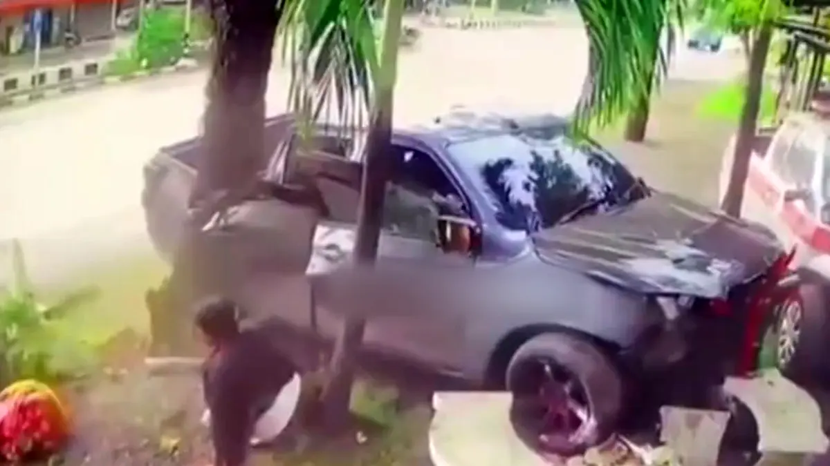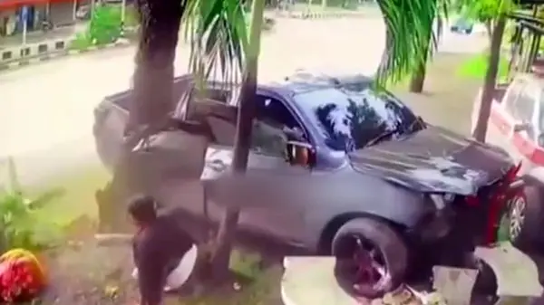 فیلم فرو رفتن درخت داخل خودرو وسط اتوبان