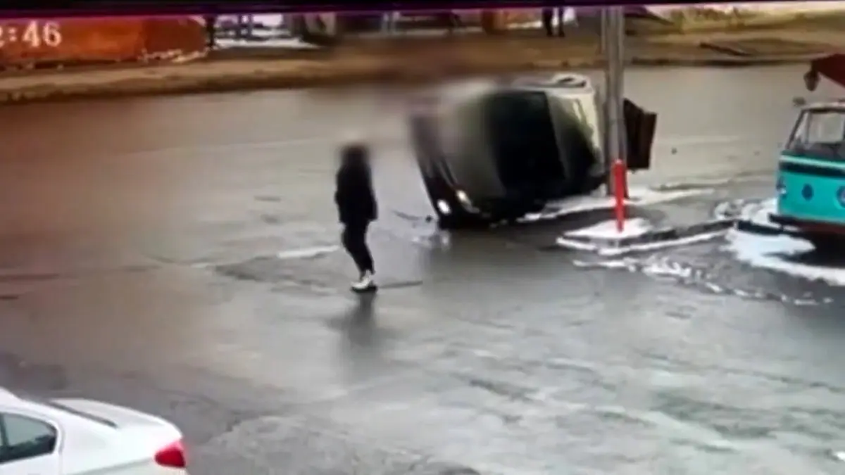 رکنا:نجات جان زن جوان درهنگام عبور از چهارراه از زمانی که خودرو سواری در تصادف واژگون شد