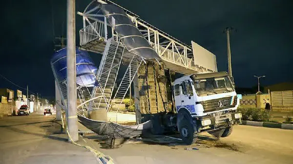 حوادث رکنا: باز شدن ناگهانی جک کامیون 10 چرخ در بولوار رسالت مشهد پل عابرپیاده را تخریب کرد.