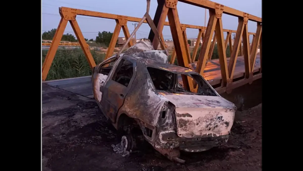 فیلم و عکس دلخراش از واژگونی ال نود در جاده آبادان / دختر جوان زنده زنده سوخت