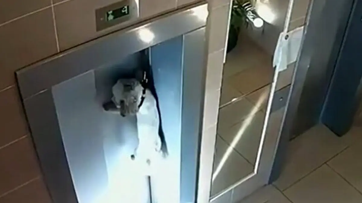 ببینید / گیر کردن دلخراش یک سگ بین درهای آسانسور + فیلم